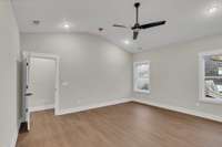 Enjoy open- concept living with a designer kitchen showcasing quartz countertops, custom cabinetry, stainless steel appliances, and a large island for dining and entertaining. Upstairs, the primary suite provides a relaxing retreat with a spa- inspired bath and generous walk- in closet, complemented by two additional bedrooms and another full bath.