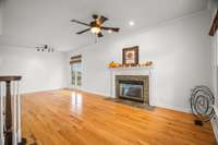 Main Level: Step inside to a spacious living room featuring a cozy fireplace, ideal for gathering with family and friends during the cooler months. The kitchen offers ample cabinetry, a double oven, walk- in pantry and flows into a bright dining room with large windows overlooking the deep, private backyard. A large utility room conveniently connects to a half bath for added functionality.