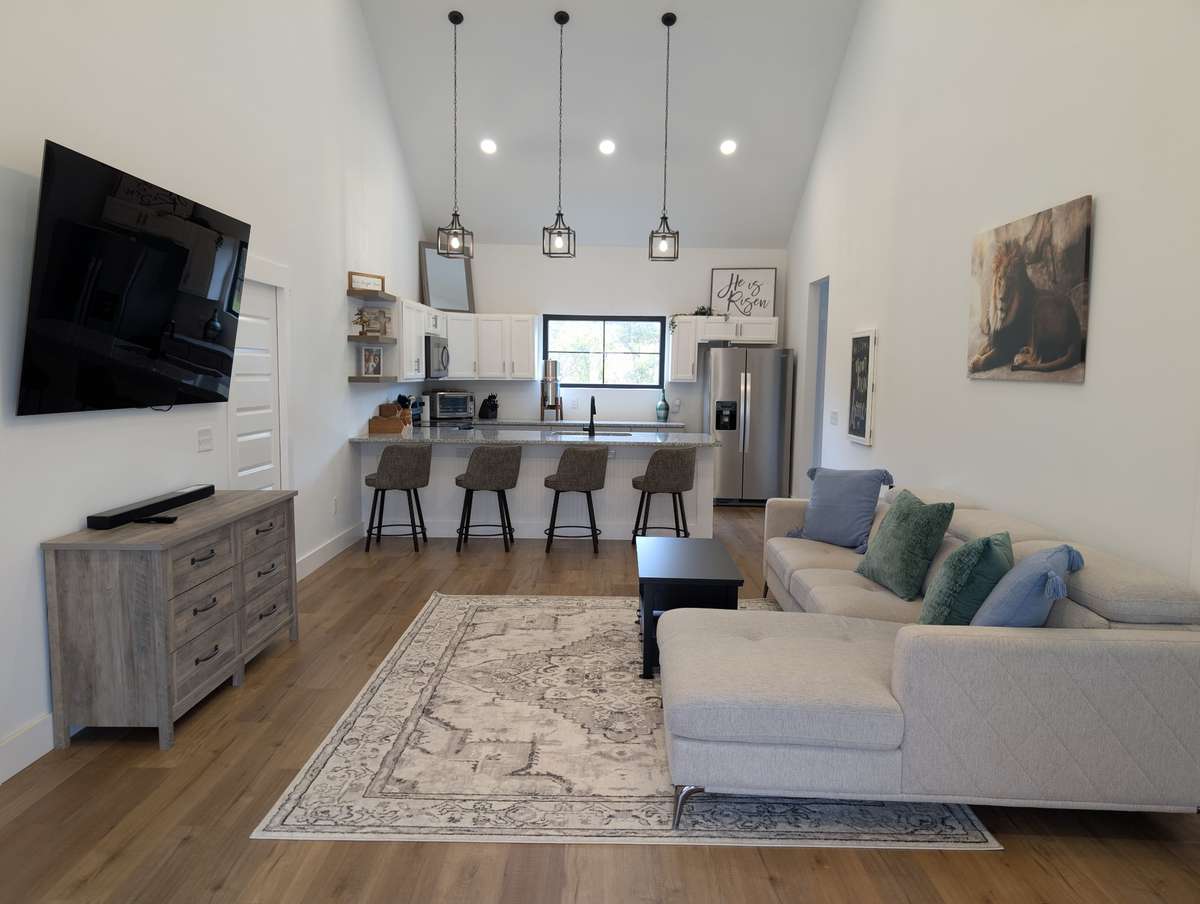 Lots of lightning options, ceiling fans in every room, vaulted ceiling, privacy fence, ample parking, space for animals, granite countertops and lots of cabinet space.