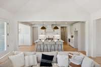 Hand Selected Modern Light Fixtures, Under Cabinet Lighting, Quartz Countertops, and a Generous Kitchen Island.