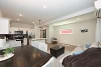 The open kitchen is equipped with stainless steel appliances, refrigerator, electric stove/ oven, microwave and a breakfast bar, pantry perfect for family gatherings.