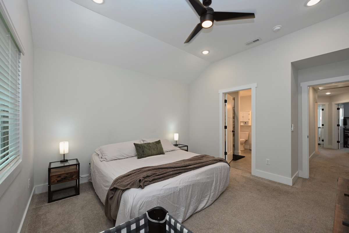 Inside there are 3 generous bedrooms and 2 1/ 2 bathrooms. The primary ensuite features a double sink and a separate shower. There is a spacious walk in closet with room for storage and the room fits a king size bed for comfort. The other 2 bedrooms share a stylish full bathroom with tub and shower.