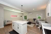 The open kitchen is equipped with stainless steel appliances, refrigerator, electric stove/ oven, microwave and a breakfast bar, pantry perfect for family gatherings.