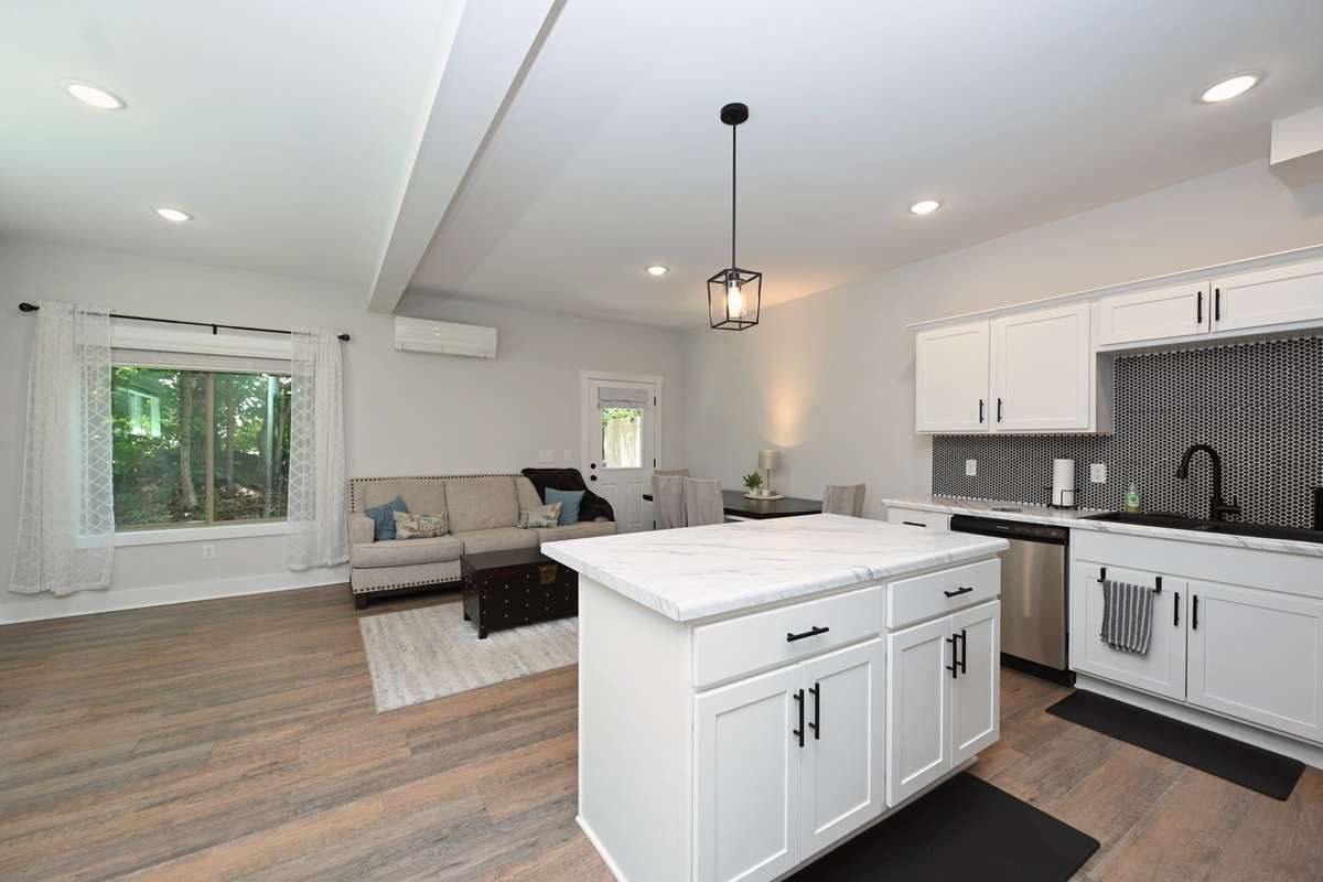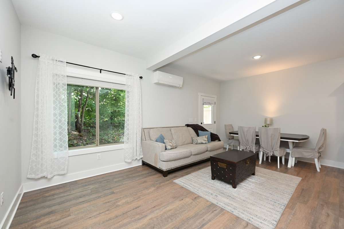 Enjoy privacy and relaxation on your back patio. Year- round comfort with central air conditioning, central/ electric heating. Additional features include a ring security system for peace of mind and a fully equipped laundry room with a washer and dryer.