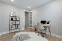 Step inside to discover an inviting open- concept floor plan filled with natural light. The spacious living area features a custom fireplace with built- ins — a true centerpiece that sets this home apart from the rest. The dedicated office provides the perfect space for remote work or creative pursuits.