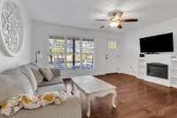 Open Concept Living framed by stunning wood beams