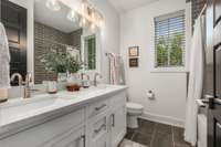 Retreat to the private primary suite, complete with vaulted ceilings, large windows, and a spa- like en- suite bath. Upstairs you' ll also find a loft prefect for entertaining, and and two additional bedrooms, and convenient laundry room with ample space for families of all sizes. Washer and dryer stay! Every detail of this home—from the designer finishes to the thoughtful layout—has been crafted for style, comfort, and functionality. Located close to parks, shopping, and dining, this home offers the perfect balance of convenience and tranquility.