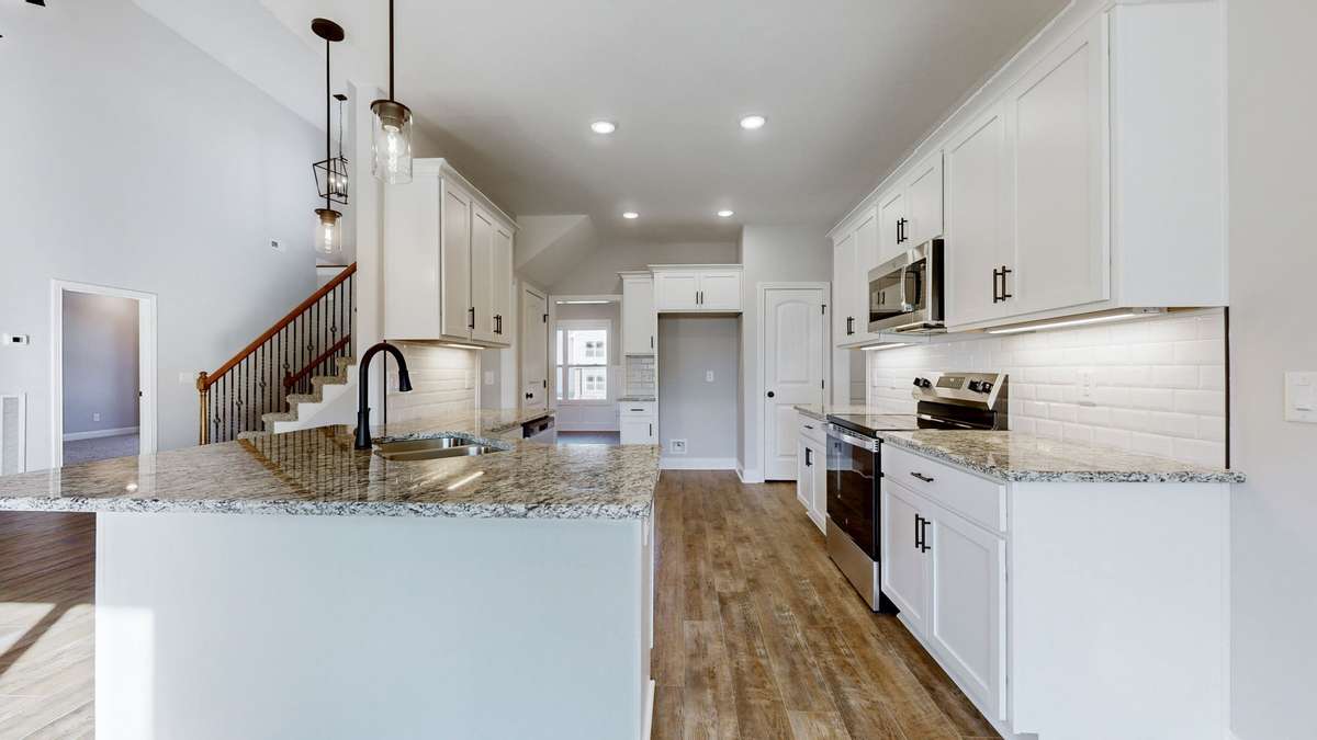 This stunning new construction home blends timeless architecture with thoughtful design. The main level features the primary suite along with a second bedroom and full bath, offering convenience and flexibility for everyday living. Upstairs, you’ll find three additional bedrooms, another full bath, and a spacious bonus room—perfect for a playroom, home office, or media area. The Beaufort’s signature turret adds a distinctive, castle- like touch to its beautiful curb appeal. Inside, you’ll find Darnell’s signature finishes throughout, including soft- close cabinetry, under- cabinet lighting, rocker switches, rounded corners, stairway lighting, and a double oven. Every detail reflects the craftsmanship, quality, and comfort Darnell Construction is known for.
