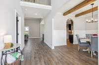 Incredible Value for a New 6- Bedroom Home in Clarksville! With over 3, 000 square feet of thoughtfully designed space, the Westbourne floor plan by Darnell Construction delivers unbeatable flexibility and style. This home features 6 true bedrooms plus a large bonus —perfect for a playroom, media room, or flexible living space. The main level includes 2 bedrooms and a full bath, ideal for guests or multi- generational living. Upstairs, you' ll find 4 additional bedrooms including a spacious primary suite with an oversized walk- in closet and a spa- like bath with a soaking tub. Enjoy premium features throughout—rocker light switches, stairway and under- cabinet lighting, granite countertops, and soft- close cabinetry. The open- concept kitchen and living area are ideal for both everyday living and entertaining, and a formal dining room adds a classic touch. With three full bathrooms, a centrally located upstairs laundry, and quality finishes throughout, this home is a must- see.