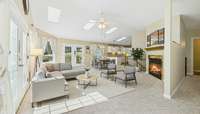 The primary bedroom, an oasis of comfort, is conveniently located on the main level, featuring an en- suite bath with a jetted tub and separate shower for ultimate relaxation. The main level also includes a practical laundry room and a guest half bath, blending functionality with style.
