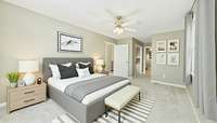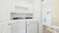 The primary bedroom, an oasis of comfort, is conveniently located on the main level, featuring an en- suite bath with a jetted tub and separate shower for ultimate relaxation. The main level also includes a practical laundry room and a guest half bath, blending functionality with style.
