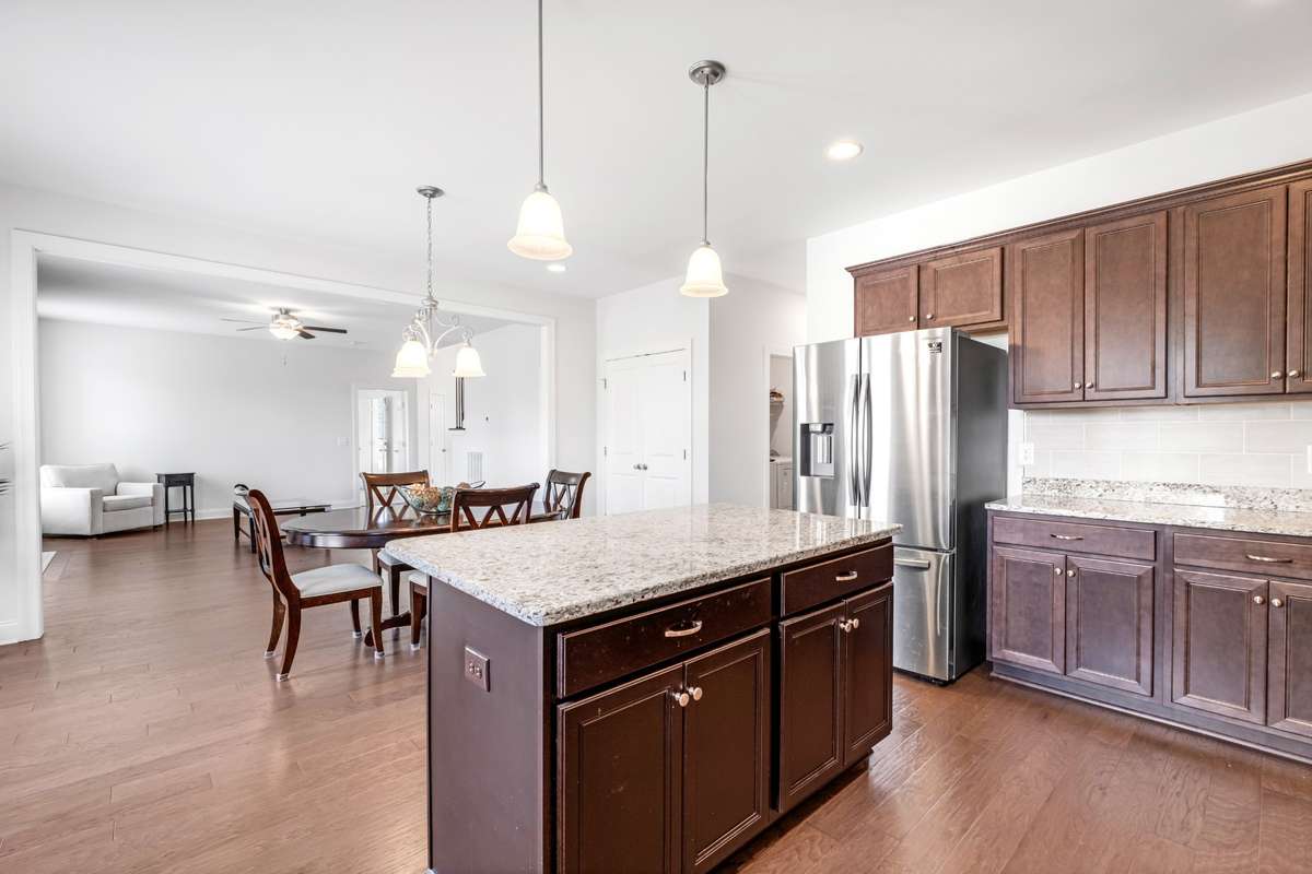 Gourgeous, newer build, 4BR, home in the wonderful Kennesaw farms neighborhood! All brick, located on a cul- de- sac and has all new landscaping around the home! Open floor plan concept with a primary and guest bedroom on the main floor, formal dining room, large living room with gas fireplace, eat in kitchen with a very large granite island and countertops, an abundance of cabinets along with a pantry area! SS appliances will stay along with the washer and dryer! Primary bath has double vanities, tile shower, separate tub and a large walkin closet! Upstairs has 2 bedrooms, full bath, family/ bonus room and a huge walkin, floored attic storage! Outside is a great place to relax with a deck off of the living area and a nice aggragate patio pad for the grill! Keep the grass and landscaping looking great with the irriagtion system!