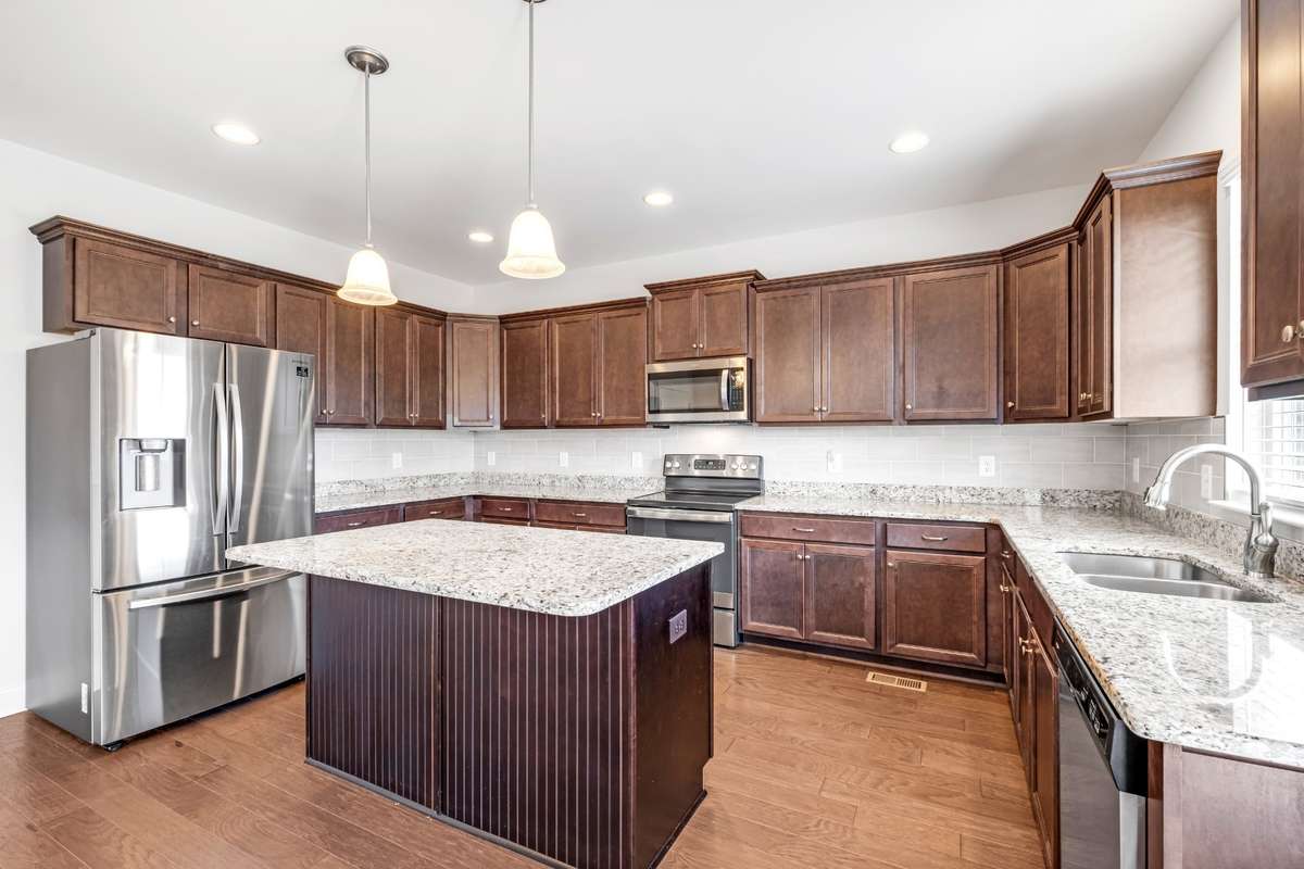 Gourgeous, newer build, 4BR, home in the wonderful Kennesaw farms neighborhood! All brick, located on a cul- de- sac and has all new landscaping around the home! Open floor plan concept with a primary and guest bedroom on the main floor, formal dining room, large living room with gas fireplace, eat in kitchen with a very large granite island and countertops, an abundance of cabinets along with a pantry area! SS appliances will stay along with the washer and dryer! Primary bath has double vanities, tile shower, separate tub and a large walkin closet! Upstairs has 2 bedrooms, full bath, family/ bonus room and a huge walkin, floored attic storage! Outside is a great place to relax with a deck off of the living area and a nice aggragate patio pad for the grill! Keep the grass and landscaping looking great with the irriagtion system!