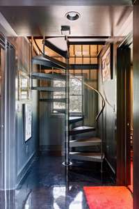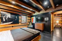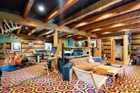 Renovated barn - currently used as a gym with wet bar, downstairs room, bathroom with laundry, and upstairs loft room