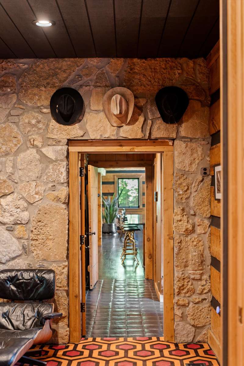 Just minutes from Leipers Fork Village, this extraordinary 41. 5- acre gated estate, with two ponds, redefines what it means to live stylishly in the country. Hidden and private behind gates, a winding half- mile paved drive through pastures and native hardwoods makes this property feel worlds away—yet it’s close to everything that makes Leipers Fork iconic. At the top of the ridge sits a masterfully renovated, hand- hewn log and stone home—equal parts artistic and sophisticated. Every inch of this residence has been elevated with artful design, moody textures, and modern comfort. The home features a generous front porch, two stone fireplaces, open living spaces and a chef’s kitchen built for gathering. The primary suite and two additional bedrooms are set apart from the public spaces for privacy, and a large bonus room, currently used as a music studio, could make ideal guest quarters. The enclosed climate controlled sun porch is something to be experienced, with doors opening out to your own private wellness retreat— complete with a hot tub, sauna, and cold plunge overlooking the trees.