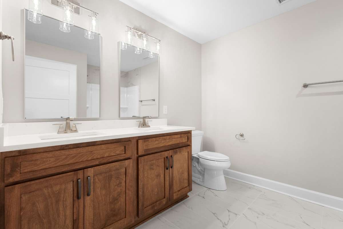 Nestled in Sango Commons. This stunning brand- new construction by BRM Homes, designed with modern living in mind. This home features an inviting open- concept layout that seamlessly integrates the living room and kitchen. As you step inside, you' ll be greeted by an abundance of natural light flooding the living area, accentuated by a cozy fireplace that creates a warm ambiance. The kitchen is a true centerpiece, showcasing beautiful cabinetry with elegant gold hardware, stainless steel appliances, and a cooktop stove. Convenience is key with a half bath on the main level and a dedicated laundry room complete with a closet for extra storage. The primary bedroom, also located on the main floor, boasts a stylish accent wall and a luxurious en- suite bathroom. Here, you’ll find a double vanity island, a soaking garden tub, a spacious tile shower, and a generous walk- in closet. Upstairs, the home offers two spacious spare bedrooms, a full bathroom and a versatile bonus room that can serve as an office, playroom, or entertainment space. Foam walls & attic. Encapsulated crawlspace. Outdoor living spaces, includes a covered porch & patio. Privacy with no backyard neighbors. Beyond the confines of the home, the Sango Commons Community offers an array of amenities, including sidewalks for leisurely strolls, a playground, and a basketball court area for active recreation. Schedule a tour today!