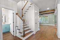 Discover the perfect blend of traditional charm and modern elegance in this stunning home. Designed with timeless details and vintage sophistication, it features warm neutral tones throughout, creating an inviting atmosphere. Enjoy the convenience of main- level living on a spacious lot with a private backyard, while the upper level offers additional bedrooms, a bath, and a versatile bonus space.