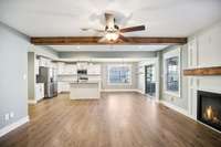 *** Seller offering $ 15, 000 in buyer closing credit* * Don' t miss this move- in- ready home, built in 2022, boasting a beautiful open floorplan perfect for modern living. The main level is highlighted by laminate flooring, charming wood beam accents, and a cozy gas fireplace.