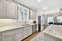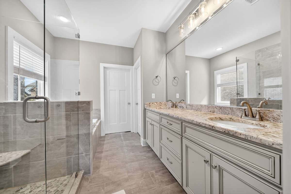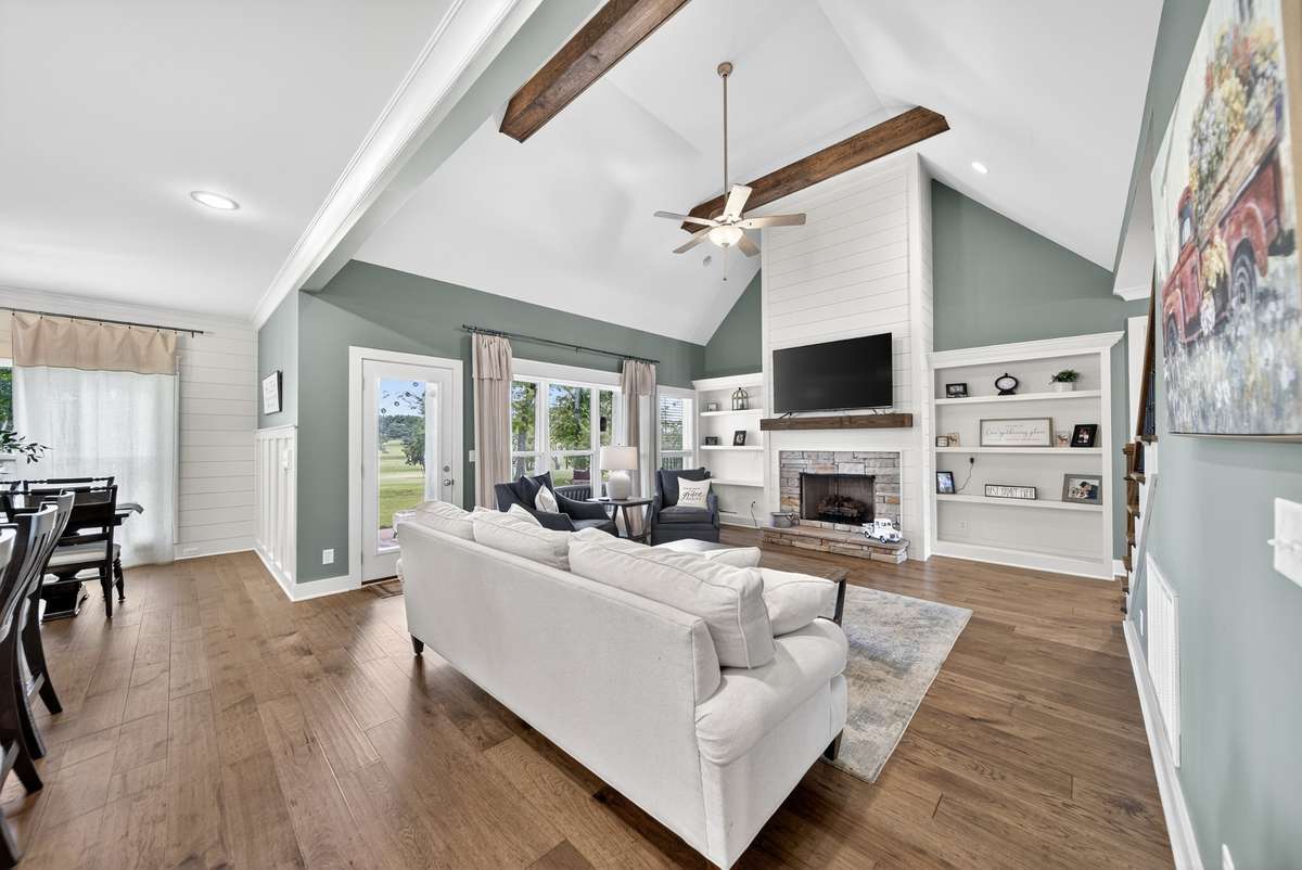 Best Lot in Tompkins Farms.... . Super Private Covered back patio looks out to open space and golf course!!! ! Exceptional Quality Construction by Eastland Construction, Master Suite on Main Level with Large Bath w/ Separate Shower and Large Tub, Double Vanities, & Granite Tops, Open Floor Plan features a Large Cathedral Ceiling Living Room w/ Hardwood Floors & Stpone Fireplace! ! Enjoy a Spacious Kitchen with Large Granite Island, Custom Maple Cabinets, Tile Backsplash, Hardwood Floors, Microwave, and Dishwasher. Bathrooms are Tile, there is a Separate Office and a Full Utility Rm! The Bonus Rm is 19 x 17 and pre- wired for Surround Sound, Only a Few Steps to the front Door and Covered Front Porch too! Better than New!!!