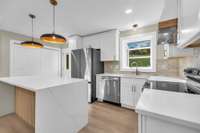 Beautifully renovated 4- bedroom, 2- bath! This stunning property features brand new LVP flooring, fresh paint, new light fixtures and a bright open floor plan. The new kitchen boasts new shaker cabinets, quartz countertops, new stainless steel appliances, tile backsplash, and a large island with wood accent detail. Both bathrooms have been fully updated with modern tile, gold fixtures, and double vanities. Exterior upgrades include new shutters, fresh paint, new patio and a covered front porch with wood columns. All 3 sheds remain! Conventionally located near shopping, dining, and schools. 3 Minutes from Swan Lake Park! Move- in ready don’t miss this one!