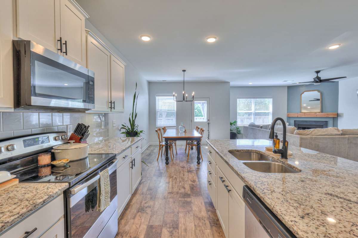 The open- concept floor plan offers spacious living areas, perfect for both family gatherings and quiet evenings at home. The bright and airy kitchen is a chef’s dream, featuring modern appliances and ample counter space.