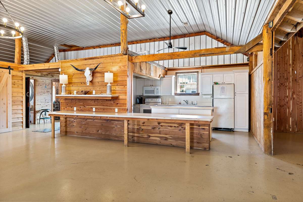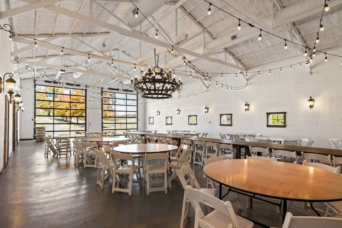 Designed for both elegance and functionality, the property’s event venues include The Carriage House—an upscale event barn with a full commercial kitchen and rolling doors, The Lodge with its cozy stone fireplace, The Stables—a 10- stall horse barn ideal for events or equestrian use, a vintage tobacco barn, and a workshop with full utilities.