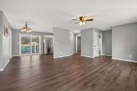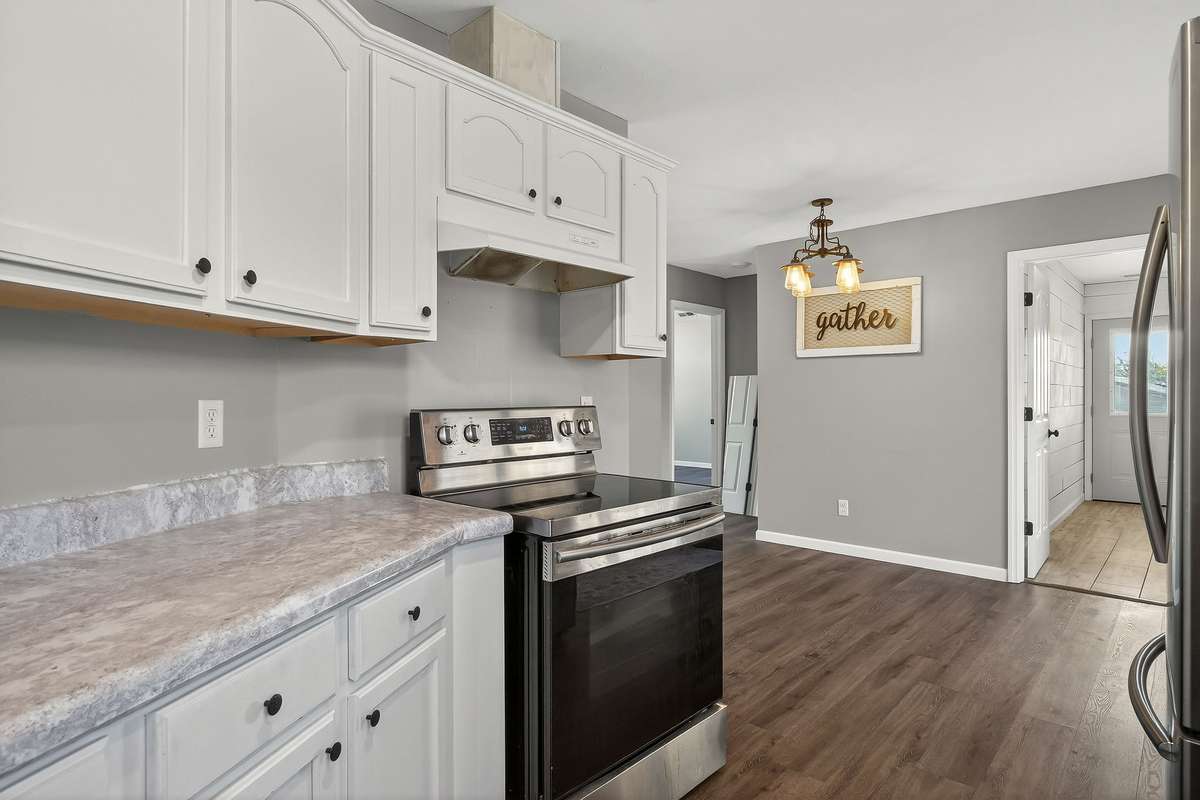 Adorable and move- in ready 3- bedroom, 2- bath home located near the end of a quiet cul- de- sac. This well- maintained property features numerous updates throughout, including a new roof installed in 2023, flooring, paint and more. The home offers a split floor plan layout with no carpet, a spacious laundry room, and a cozy living area perfect for everyday living. Enjoy relaxing or entertaining on the back deck that overlooks a large yard with peaceful farmland views. Additional highlights include a one- car carport and a convenient location just minutes from town but in the county with no city taxes!