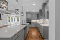 Step inside to an inviting open floor plan where custom shiplap ceilings, plantation shutters, and designer finishes create a sense of warmth and sophistication. The spacious living room flows seamlessly into the gourmet kitchen, anchored by a massive island ideal for gathering and entertaining. A sun- filled morning room invites natural light throughout the main level, while the private office provides a perfect work- from- home retreat.