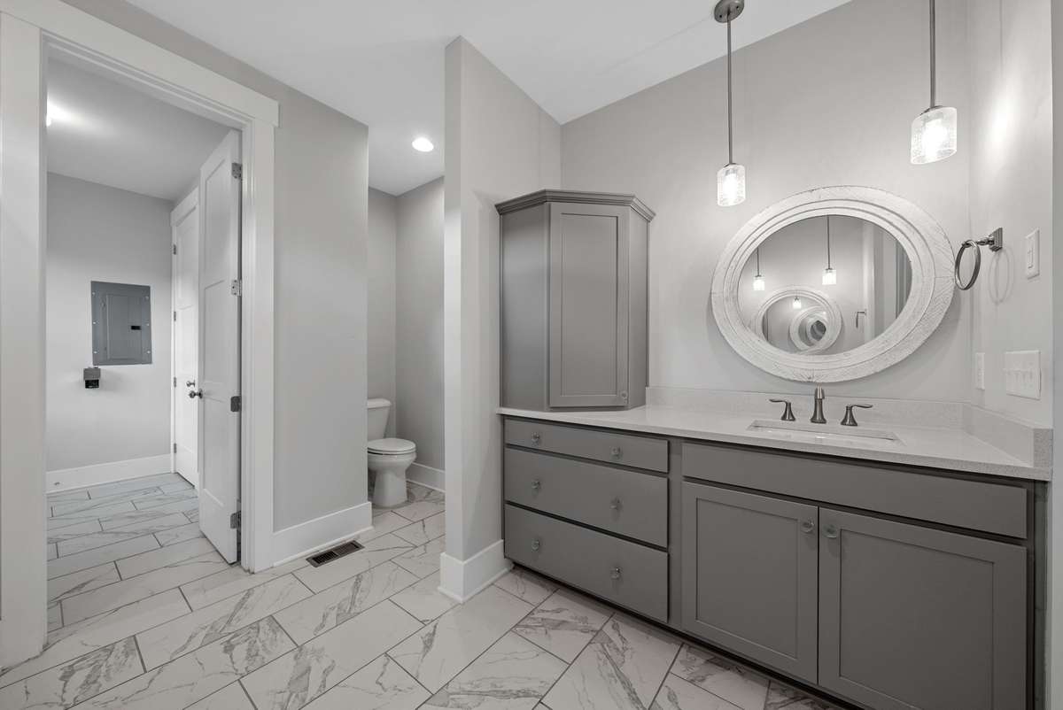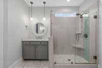 The luxurious primary suite on the main floor features an elegant en- suite bath and generous walk- in closet. A secondary bedroom and full bath on the main level offer flexibility for guests or multi- generational living. Upstairs, a large bonus room provides endless possibilities for recreation, a home theater, or hobby space.
