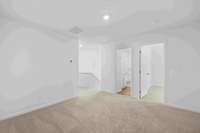 When you enter the Primrose floorplan, you will be greeted by a wide entry and a dedicated office space. As you proceed you will find a half bath, and ample storage spaces before entering the open great room, dining room and kitchen. The kitchen is equipped with a gas range, two pantries, and an oversized quartz island. Head up the stairs and you will find a loft space, three generously sized guest bedrooms, and oversized laundry room, and an owner' s suite with it' s own bathroom and walk in closet.