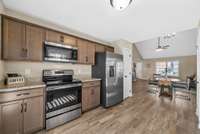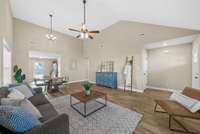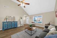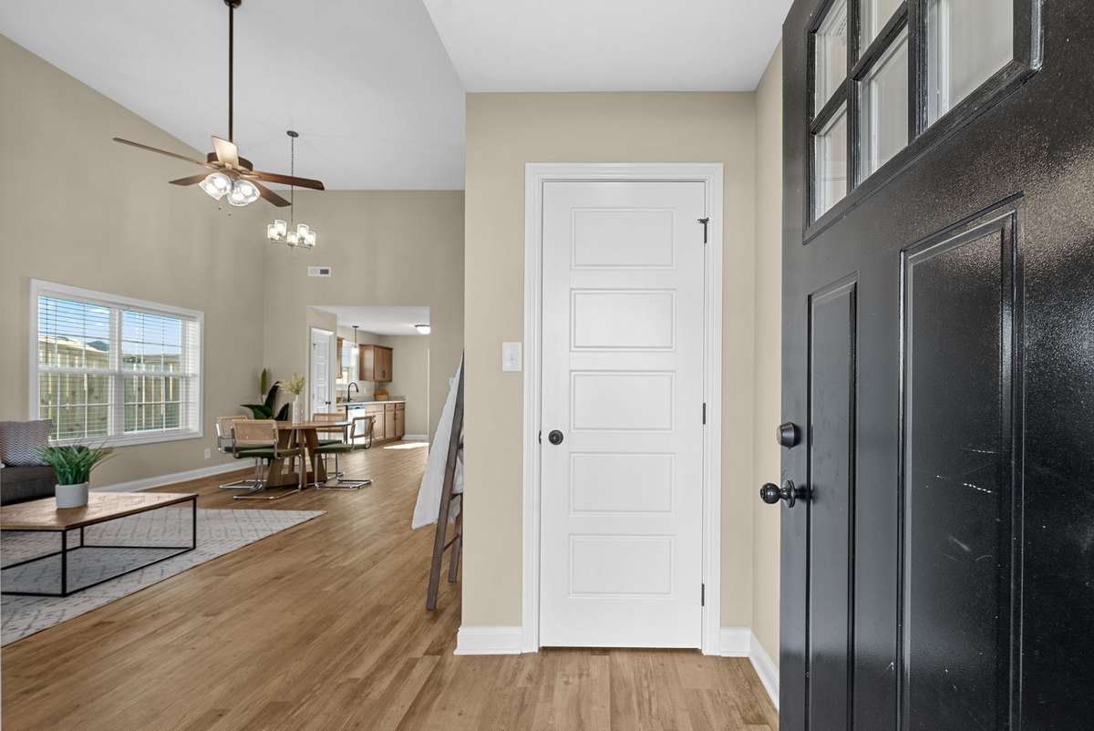 The living room is warm and welcoming, featuring vaulted ceilings and a handy coat closet. Just off the main living area, the mud room offers incredible flexibility, with plenty of room for a storage cabinet or shoe rack.