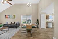 The living room is warm and welcoming, featuring vaulted ceilings and a handy coat closet. Just off the main living area, the mud room offers incredible flexibility, with plenty of room for a storage cabinet or shoe rack.