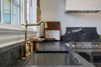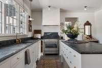 Custom cabinetry, marble finishes, unlacquered brass and polished nickel plumbing, and a charming carport with tongue- and- groove walls and wainscot ceiling showcase craftsmanship at every turn. The kitchen’s ten- foot span of windows overlooks the pool and picturesque grounds. Behind the beauty lies quality—new HVAC and ductwork, roof, half- round gutters, plumbing, electrical, pool equipment, plaster, exterior doors, approx. 800 sqft of unfinished attic storage space, and landscaping with 300 plantings ready to bloom in spring.