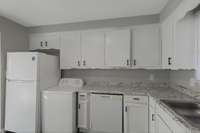Step into the front door and find yourself in an cozy living room, featuring a large bay window for lots of natural light out and outside views! The living room flows right into the efficiency kitchen featuring recently purchased kitchen appliances and a washer, dryer.