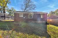From the kitchen there is a side door for easy access to the fenced back yard, offering privacy, room for play and lounging. Back in the home there are three bedrooms and full bath are all to the left of the living room. The entire home has vinyl flooring and and has been recently painted!