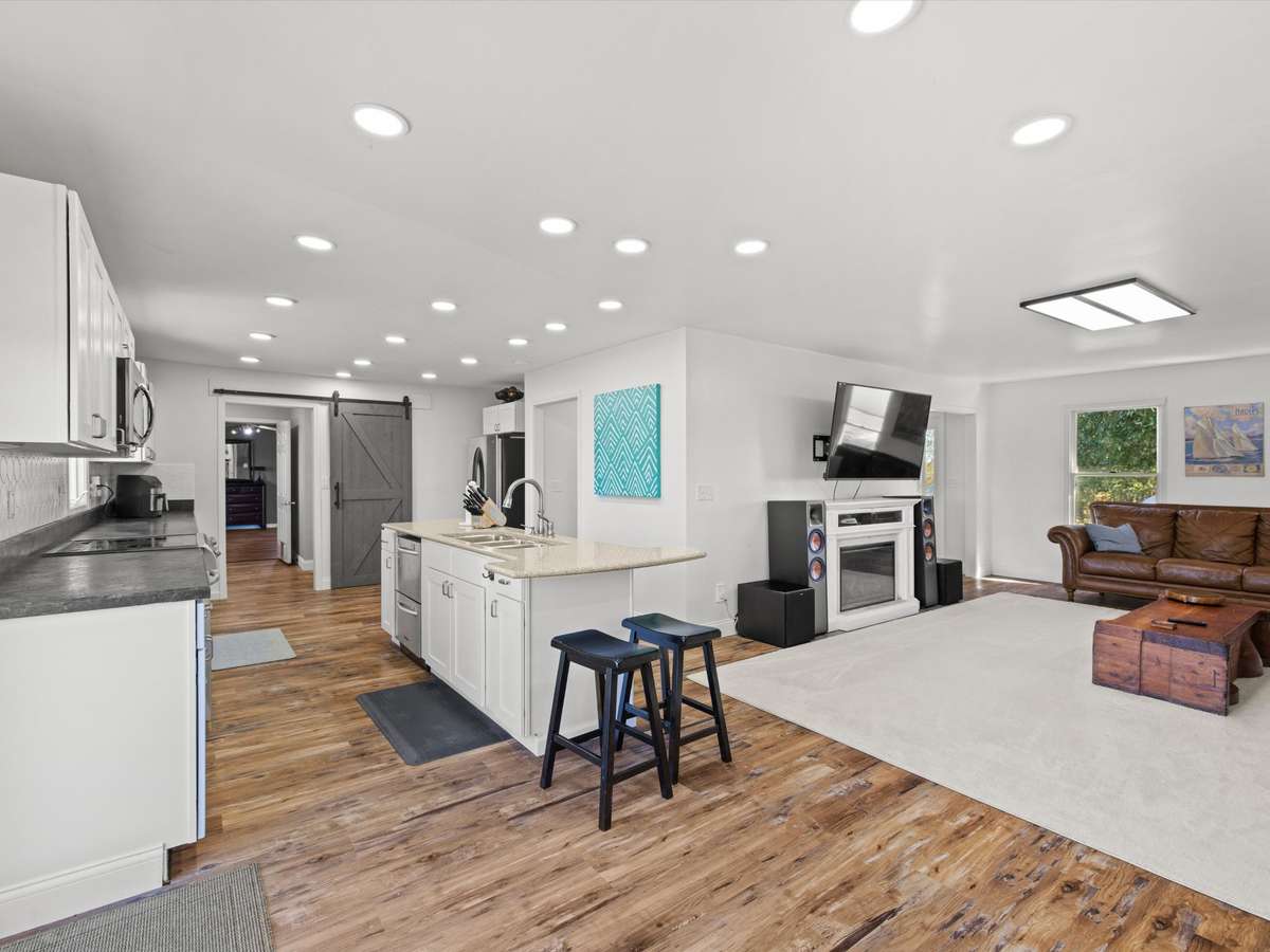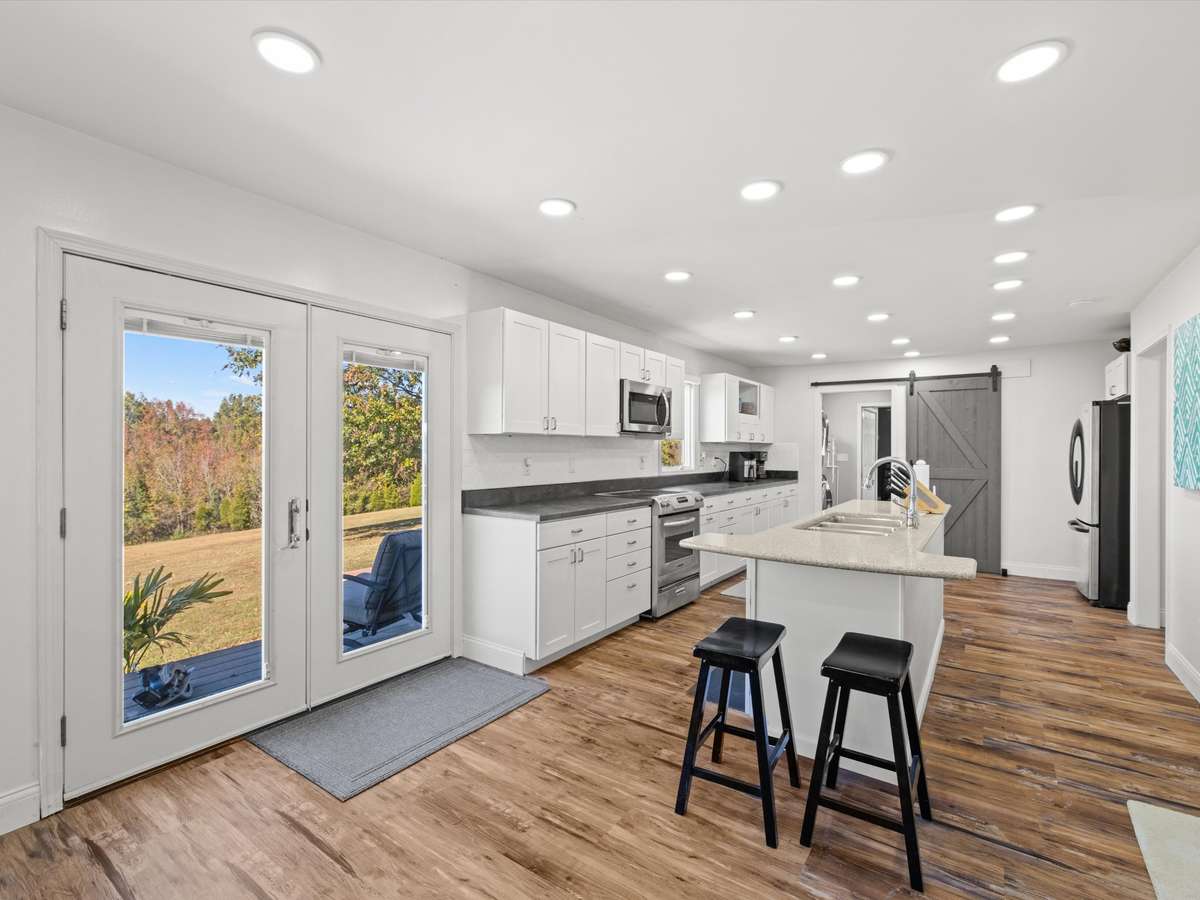 Remodeled Country Retreat on 16. 7 rolling acres. Beautifully remodeled and spacious, this 3- bedroom, 3- bath home offers comfort, versatility, and income potential. One of the suites features a private entrance, ideal for a mother- in- law suite, guest quarters, or rental opportunity. The home includes two bonus rooms, a formal dining room, and an open concept kitchen and living area perfect for entertaining. Enjoy thoughtful updates throughout, including a new roof and new HVAC, plus ample storage for convenience. The property features a pond, and a one- stall barn complete with a designated kitchenette and bathroom area- great for hobby farming or hosting events. Unwind on the back deck and take in breathtaking sunsets over the gently rolling landscape.