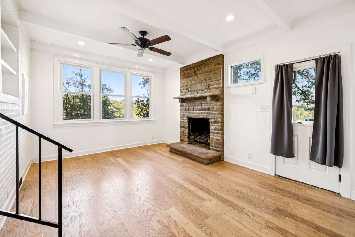 Inside, enjoy real hardwood floors, an open living space, and a modern kitchen with new appliances and updated cabinets. The versatile den can be used as a home office, playroom, or bonus space—complete with beautiful stone fireplace! New windows and upgraded bathrooms ensure both efficiency and comfort.