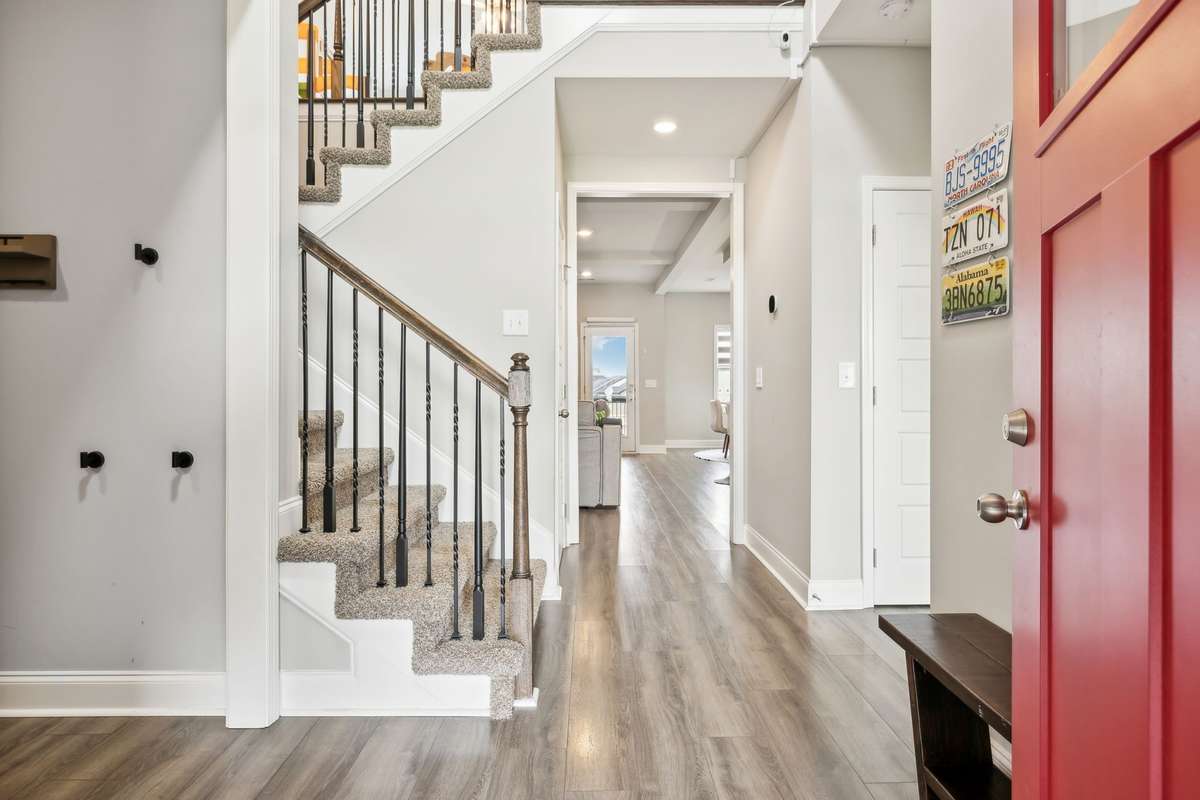 Better than new! Welcome to this meticulously maintained home that blends comfort & smart living. Designed for convenience & functionality, this 4- bedroom, 3- bath property in the Kirkwood school district is less than two miles from I- 24. Set in a quiet neighborhood with walking paths, two ponds, & a playground, this home has so much to offer. The covered front porch radiates curb appeal. Step inside to an open- concept layout centered around a spacious living area with gas fireplace. The kitchen is fully equipped with granite countertops, stainless steel appliances, tile backsplash, soft- close cabinetry, & a large island — the perfect setup, whether you' re cooking dinner or hosting friends. The primary suite is located on the main floor & features a walk- in closet, double vanities, & a beautifully tiled shower. A second bedroom is also located on the main level, ideal for guests, a home office, or multi- generational living. Upstairs, you' ll find two more bedrooms, a bonus room, & a full bath — plenty of space for family or visitors. Out back, relax on the custom- built screened & covered patio that overlooks a privacy- fenced backyard — a great space for grilling, entertaining, or just unwinding. The RainBird irrigation system ensures a beautiful, lush lawn. This move- in- ready home combines thoughtful design, smart upgrades, & quality craftsmanship. Schedule a private showing & see it for yourself. VA assumable