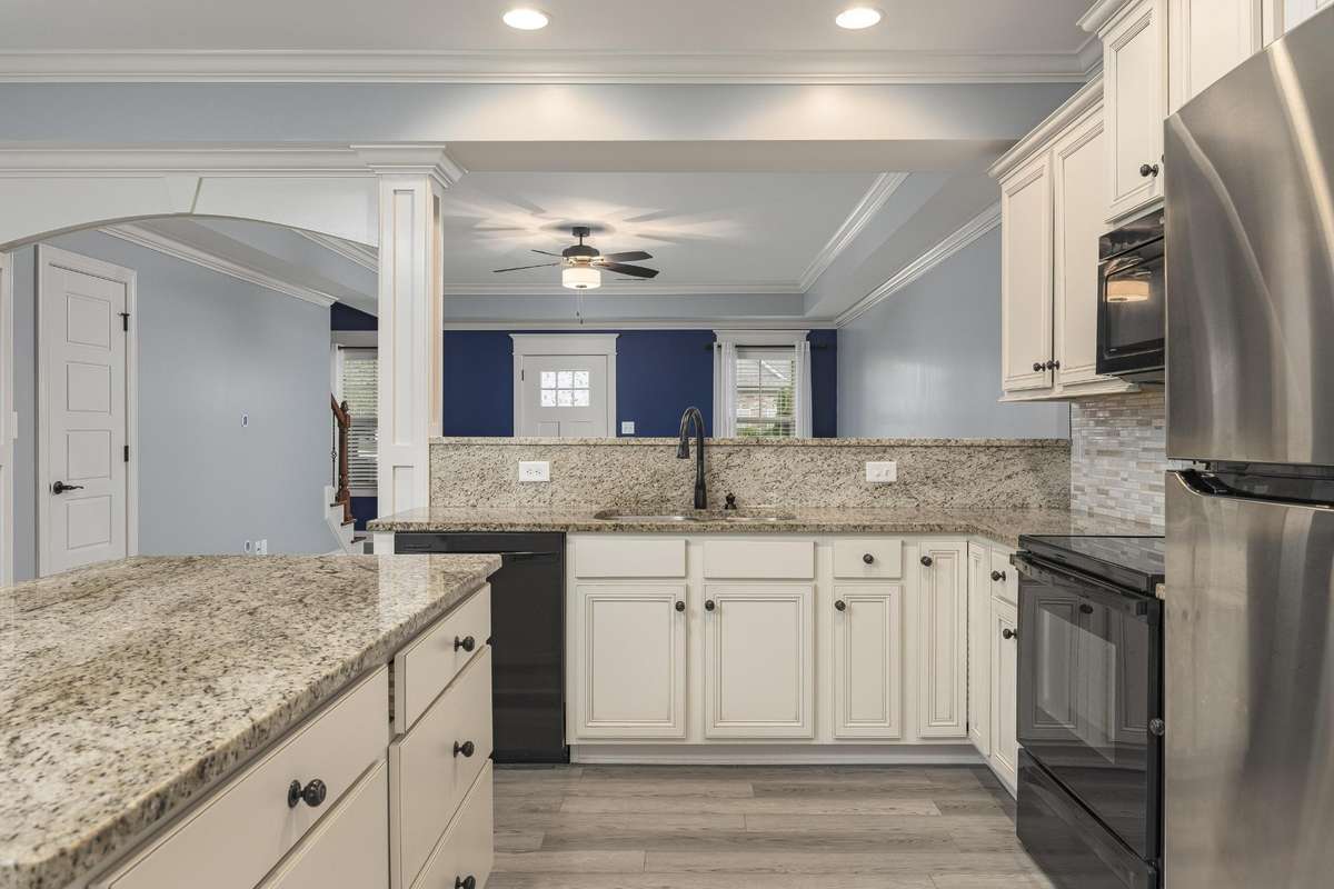 Welcome home to this beautifully maintained 2BR/ 2. 5BA townhouse built in 2016 and thoughtfully updated for comfort and convenience! The main level offers a spacious great room, dining area, and a kitchen featuring granite countertops, pantry, and a handy kitchen island addition. All appliances convey—including washer and dryer. Upstairs, you' ll find two ensuite bedrooms, each with bright natural light and full baths. The primary suite includes a walk- in tile shower and elegant double tray ceiling, and double closets. A chair lift to the second floor can remain for added accessibility. Additional highlights since it' s been built include flooring in the living room and kitchen, storm doors on both front and back, and low- maintenance landscaping with rock and rubber mulch. The fenced backyard is beautifully manicured and includes a storage building. This turnkey home offers style, function, and low- maintenance living in one perfect package!