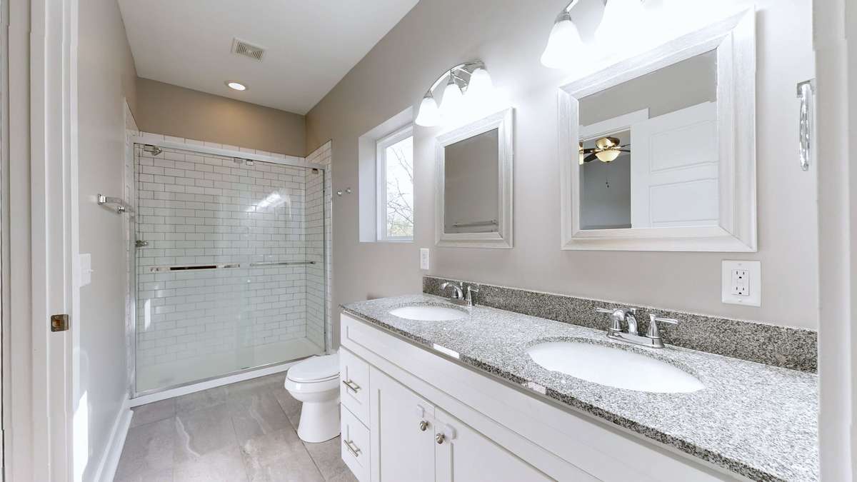 Upstairs, the generous primary suite provides a peaceful retreat with a walk- in closet and a spa- inspired bath complete with subway- tile finishes and dual vanities. Two additional bedrooms, a full bath, and a conveniently located laundry room complete the upper level.