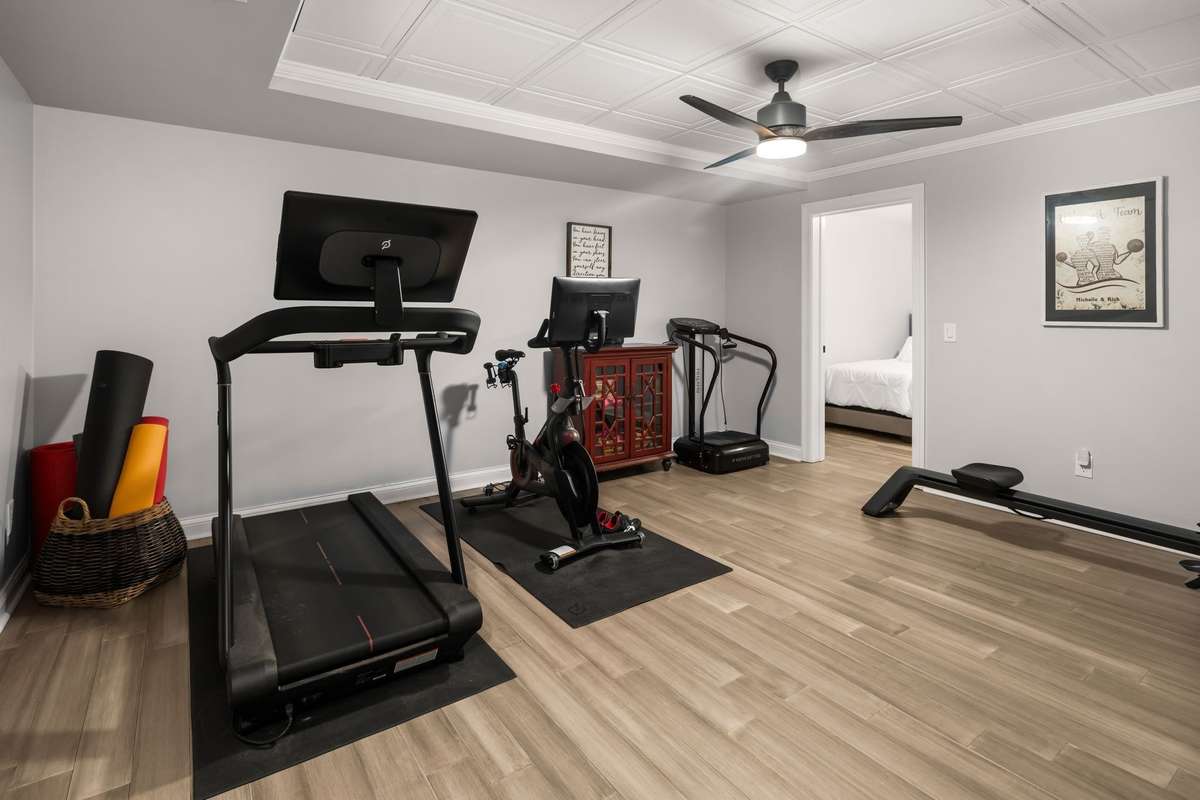 Upstairs, you' ll find freshly painted guest bedrooms and a beautifully remodeled bathroom with upscale finishes, while the front bedroom is enhanced with brand- new windows for added natural light. The expansive basement offers multiple flexible spaces, including areas for a gym, studio, or guest suite, plus a wine cellar, bamboo flooring, full bath, and updated electrical systems.