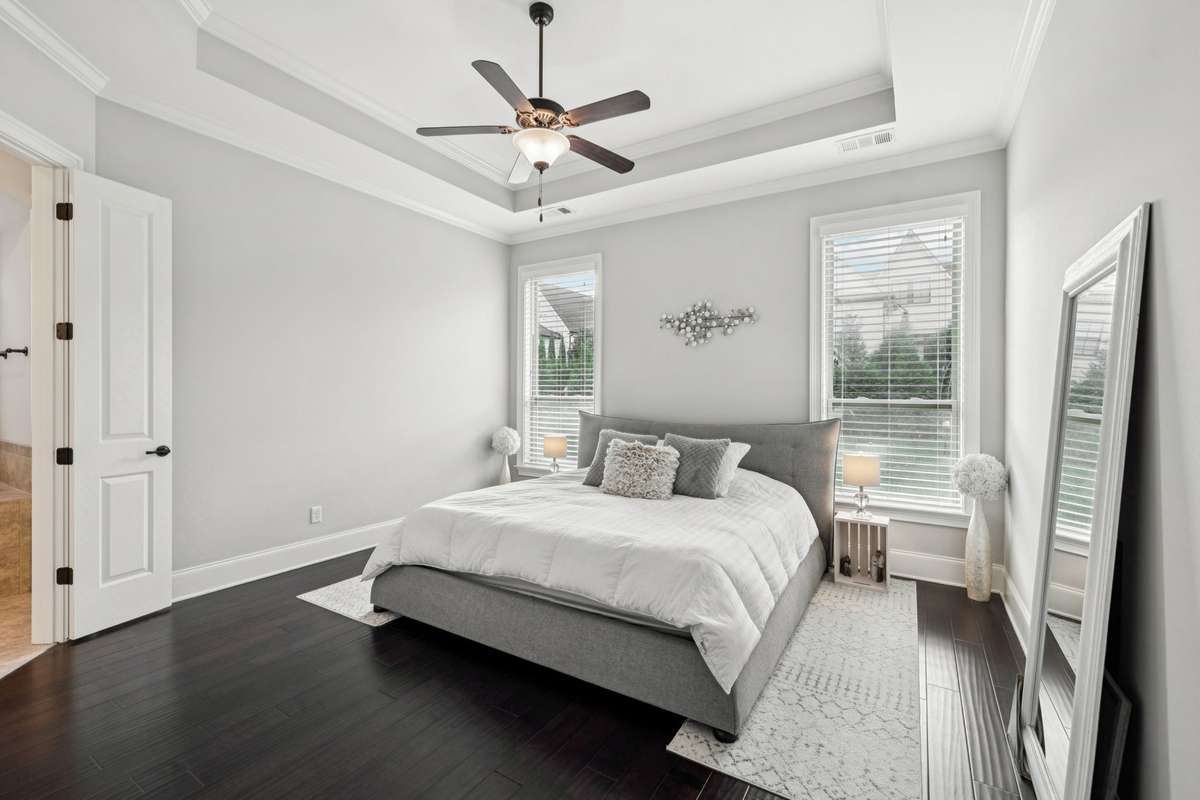 TONS OF UPGRADES — move- in ready in the best neighborhood! Meticulously maintained and designed to impress, this home welcomes you with soaring ceilings, rich hand- scraped hardwood floors and a bright, open floor plan. The gourmet kitchen is a true focal point with gleaming granite counters, a massive island and premium finishes ideal for entertaining. The private primary suite delivers a spa- caliber retreat with a tiled shower, separate soaking tub and an expansive walk- in closet. Outside, a covered patio overlooks a secluded backyard framed by mature arborvitae for exceptional privacy. Standout upgrades include Guardian Polyurea garage flooring, rain bird irrigation system, professional landscaping, a 2022 roof and careful owner maintenance throughout — plus an oversized two- car garage with double bay doors. Turnkey luxury with substance and style; schedule your private showing today.