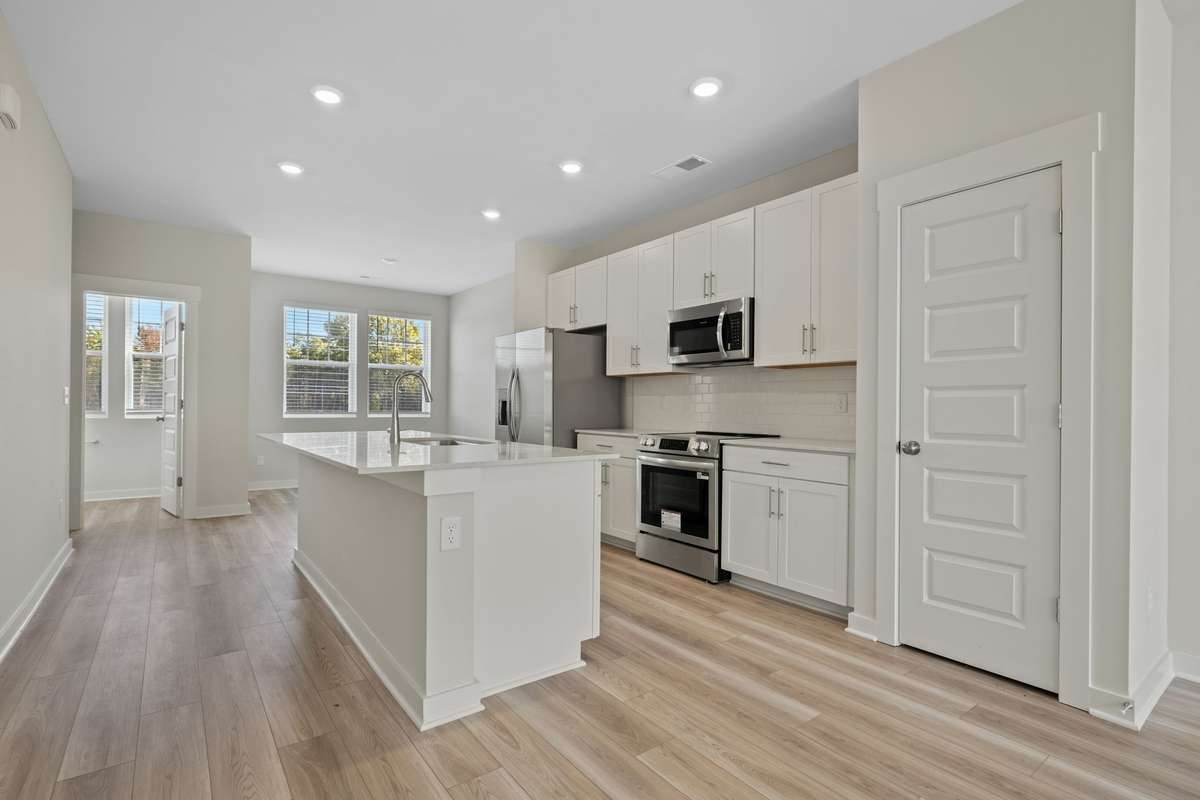 LOT # 1031 - Gatlinburg. Upon entry into this new three- story townhome is a convenient two- car garage for storage space. On the second floor is the main living area, featuring an expansive Great Room with direct access to a modern kitchen and dining area. Residing on the top level are two bedroom suites situated at opposite ends of the home to grant privacy, both of which feature attached bathrooms for enhanced livability.
