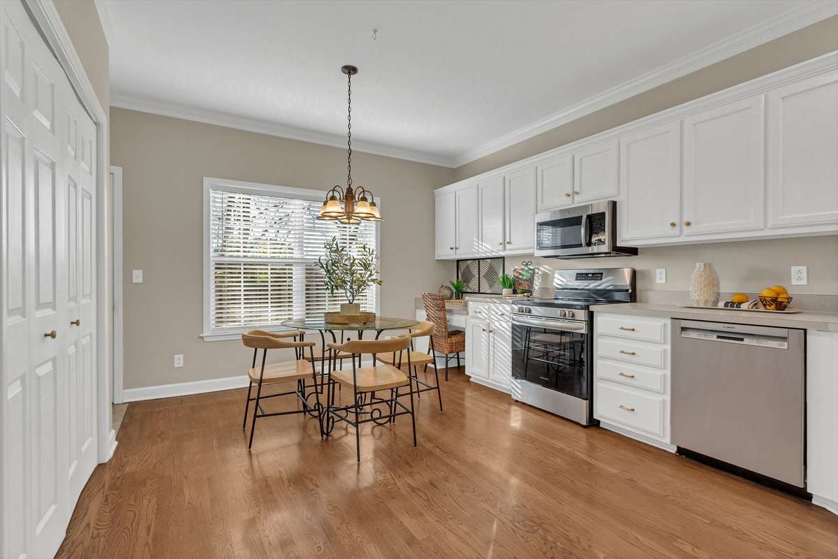 Amazing Value in Williamson Co! Private end- unit townhouse in Spring Hill offering extra privacy with a tree- lined backdrop and open greenspace. This 2 bedroom townhome features a spacious eat- in kitchen features abundant cabinet space, a built- in desk, and a double window that fills the room with natural light. The kitchen features newer stainless appliances. All appliances, including the washer & dryer remain! The family room features hardwood floors, a built- in shelf and a cozy fireplace. Both second floor bedrooms include vaulted ceilings and walk- in closets. There is a full bath on the second level. This townhome is conveniently located less than a mile from Longview Elementary and the Longview Rec Center, with quick access to Saturn Parkway for easy commuting. This neighborhood features a community pool, sidewalks and more!