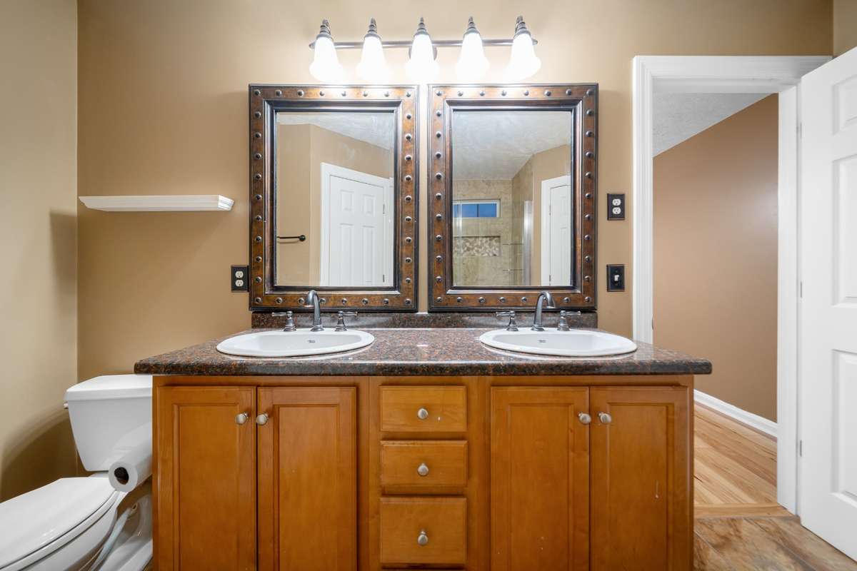 Well-appointed owner’s bath offering double vanities and walk-in closets