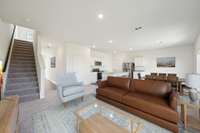 Lot 547- Welcome top top selling Voyager Plan with an open concept kitchen and family with large island open to natural light at back of home. This home is walkable on sidewalks to pool and playground opening next Summer. Step into your next home through the foyer from the front porch and continue down the hall to the main living space, passing a convenient powder bath along the way. Upstairs, a loft connects two additional bedrooms—one with a walk- in closet—that share a bath. As you head toward the primary bedroom, you’ll pass the laundry room before arriving at the spacious primary suite, complete with a walk- in closet and private primary bath.