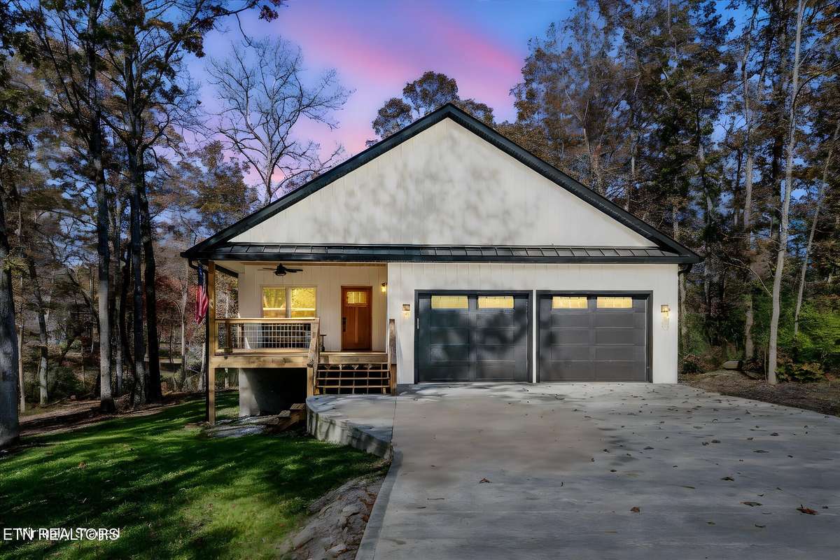 • Vinyl board & batten siding with architectural shingles and metal accents on eaves