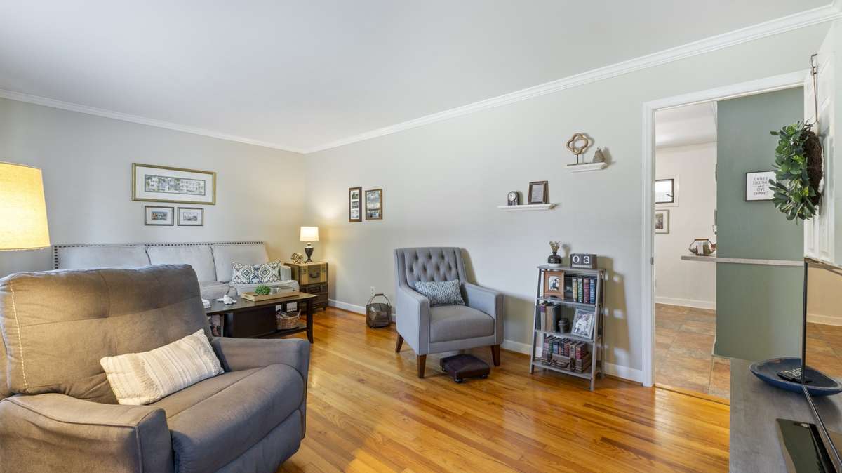 Charming brick home on corner lot in convenient to everything location. 3 bedrooms and 1. 5 baths with fresh paint inside and out and plenty of room for entertaining friends and family. One car attached garage and 2 car carport at back entrance for easy covered access to kitchen/ den area. Hardwood floors in living room, hall and bedrooms, vinyl privacy fence on 2 sides of back yard. Kitchen cabinets offer lots of storage including 3 large, deep drawers for pots/ pans and 2 tier lazy susan in corner cabinet. Garage has cabinets and shelving. Tile in hall bath. Very nice landscaping. Well maintained and ready for your family to enjoy. One year home warranty with acceptable offer.