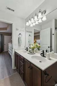 This stunning 3- bedroom, 2- bath home features a spacious great room with neutral décor throughout, new light fixtures and beautiful new Luxury Vinyl flooring. The open eat- in kitchen boasts granite countertops and plenty of counter and cabinet space. The split bedroom floor plan includes a main- level primary suite for added convenience. Enjoy the outdoors in your private, fenced, level backyard with professional landscaping. A two- car garage provides plenty of storage. Conveniently located near restaurants and the interstate — and the owner can move quickly!
