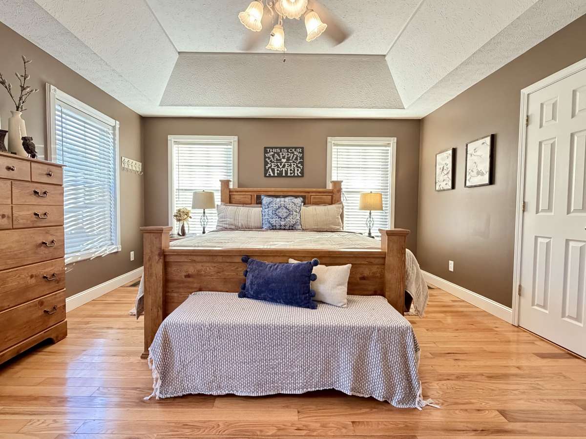 Beautiful and welcoming home with newly updated landscaping on level 1. 47 acre lot with a back yard that has been custom built for entertaining, with an in- ground saltwater pool complete with a tanning ledge, full and fenced in concrete patio surround, pool cover and a new pool pump with warranty. This home features custom cabinets in kitchen and primary bath, new interior paint, new carpet just installed, new refrigerator, hardwood floors, gas fireplace, game room, bonus room, invisible pet fencing with two collars, and a detached two car garage. Large HVAC just replaced and smaller has just been serviced.